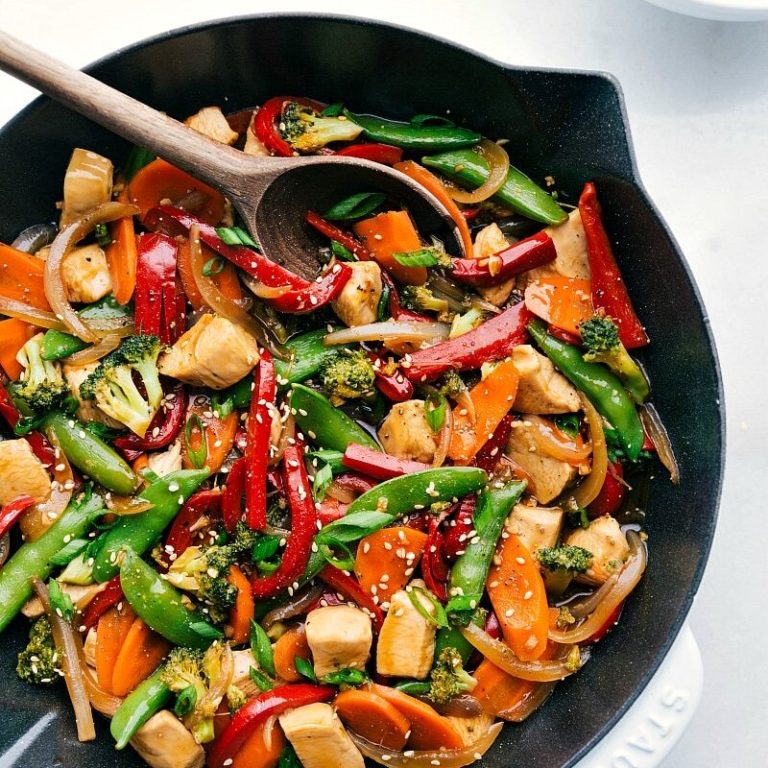 Lightly Fried Chicken Cubes, Snow Peas and Carrots in a Sweet Orange Sauce